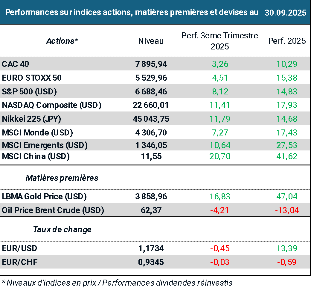 Ci-dessous le résumé des principales évolutions des marchés au cours de ces trois mois d’été :
